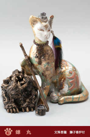 「新シリーズ《菩薩 BOSATSU/慈しみのイコン》の猫菩薩たちの眼差しの 彼方に、あなたは何を観るでしょうか?」蝉丸さんの作品には、洋の東西や性別など、既成の枠組みを超えた、無国籍で不思議な存在感があります。陶の胎でかたちづくられた本体は、アクリル彩色や和紙、箔、木、自然石、ガラス、金属など、異なった素材の組み合わせによる絵付けや装飾品、ディスプレイで彩られ、見る人を幻想の世界に誘(いざな)います。伊勢はメジャーデヴューをしたところ、お気に入りの地でもあるとおっしゃる蝉丸さん。会期中、会場に常駐される予定です。 |