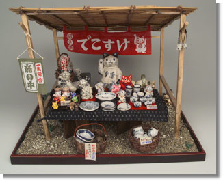 小さな露店販売「でこすけ」を通して皆様も和んで頂ければ幸いです。 本物の「でこすけ」は毎月第2日曜日、瀬戸の窯神橋のふもとに「せとやき楽市」の仲間として参加しています。