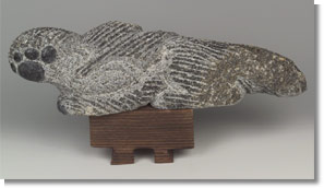石の持つ温かさに魅かれて、石彫刻を始める。玄関先の沓脱ぎ石、家の周りなどを囲っていた縁石、辻に立っていた道しるべ、漬物石に石臼と、かつては身近だった石が、ずいぶん身の周りから消えつつある現在、石を生活の中にもう一度取り戻したいと、滋賀県大津市山中のアトリエで創作活動を続けています。最近は墨絵など、絵画も手掛けています。今井さんの作品は、いつか見た道端の道祖神やお地蔵さまのような、遠い日の記憶をよびさまします。