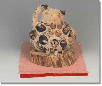 やわらかな土だったり、ゴワゴワ、ツブツブの土だったり、多種の土をブレンドしてみたり、土まかせにほそ長いのやまるまるのネコをつくります。色土をぬったり、いぶしたり、まだまだ技法もいろいろためしながら、、、。あったかみのあるほのぼののツチネコをつくってゆきたい。