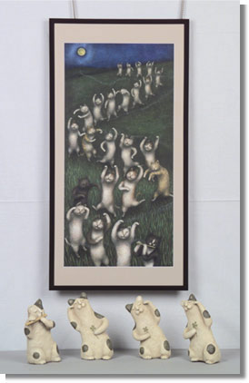 幼少の頃から、犬・猫・鳥などの動物たちと共に暮らし、大の動物好き。特に猫にとりつかれ、今までに何10ぴきの猫たちとゆかいに過ごし、現在はモジャという名のオス猫と共に暮らしています。猫たちがあたえてくれたものは、計り知れなく、その感謝を込めて、これからも創作していきたいと思っています。 |