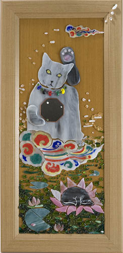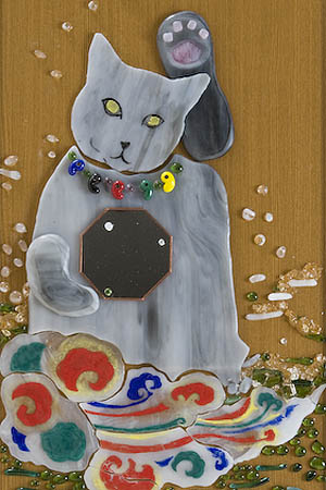 すべてガラスで描いた招き猫です。モデルはわが家のじーちゃんねこ“まりの”です。