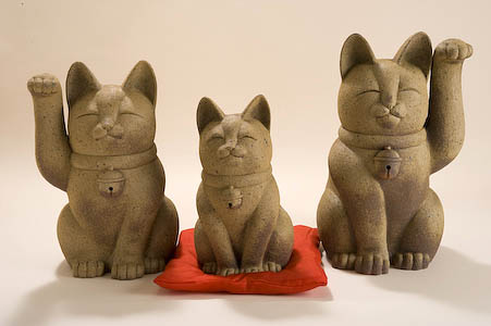 右手は金運、左手は客招き、子猫は幸運を招くように可愛く仕上げました。