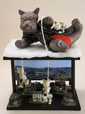 福猫世界の天上界より人間界へ、福を呼ぶために降りる福猫達。どの家へ降りて何の福をもたらそうか思案中。