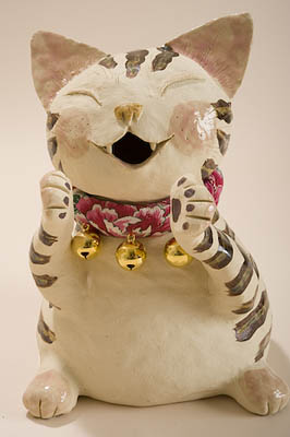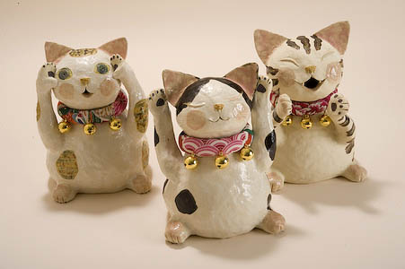 1996年頃から陶芸でまねきねこをつくり始める |
