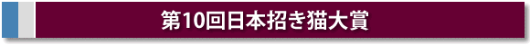 | 第10回「日本招き猫大賞」は、2009年9月に開催した第11回平成の招き猫100人展に出品された作品の中から、来場者、インターネットでの投票と審査委員の選考の結果、まいけるからわた作「安善興福猫(あんぜんこうふくねこ)」に決定しました。 |
