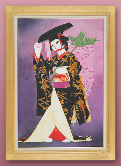 歌舞伎舞踊の演目でもある艶やかな藤の精を、猫で表現します。それはまさに「愛」を招く招き猫のようです
