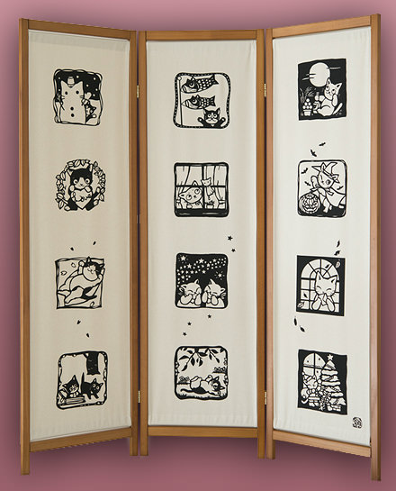 幅90×高さ150cm 素材:キャンバス地の衝立にきり絵