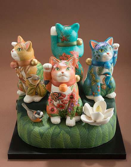 2002年より猫をモチーフに絵画、立体、照明の制作を始める。