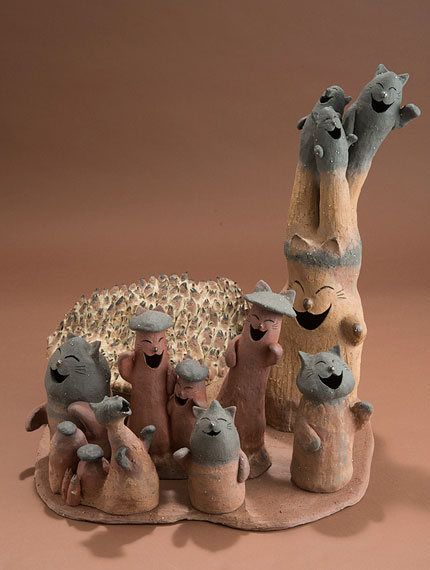 キノコ、サボテン、クジラなど、動植物や自然の風物をベースに独自の創作猫を作っています。