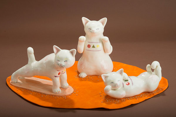 2001年〜合歓工房 岸やよいとして、猫・ふくろうなどの動物やお地蔵さまなどを制作。