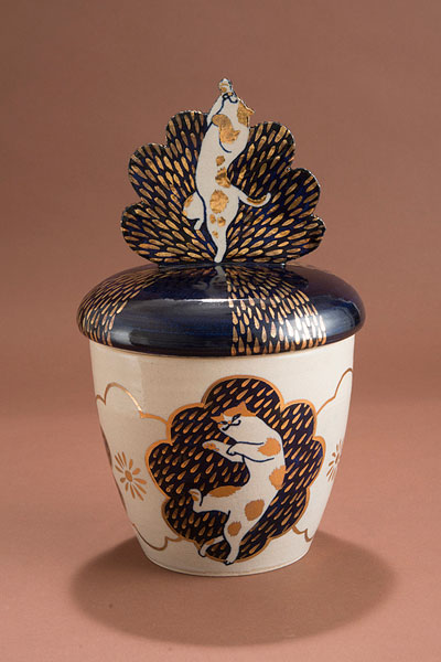 作品No.038 ウハウハ踊り猫紋蓋付き鉢