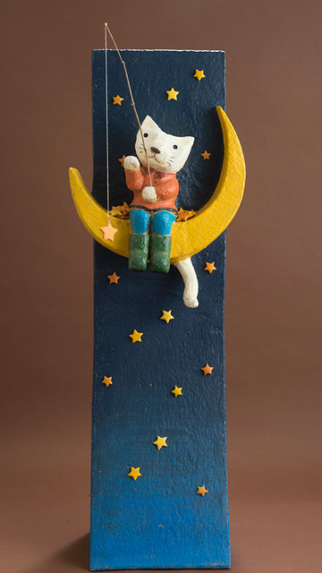 木はくすの木で、本体、猫、月などは一体です。