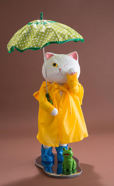 招き猫の由来は、雨の日に猫が顔を洗っている姿が招いているように見えたという話と、親の帰りを待つ子どものイメージをかけ合わせた。
