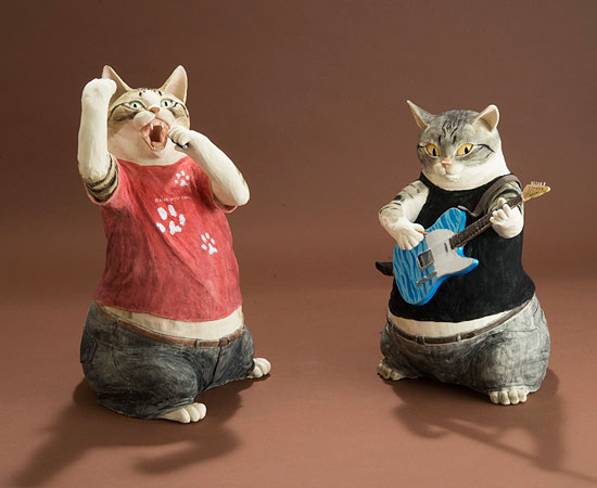 陶製素材にアクリル絵具で彩色した猫フィギュアを広島で制作しています。