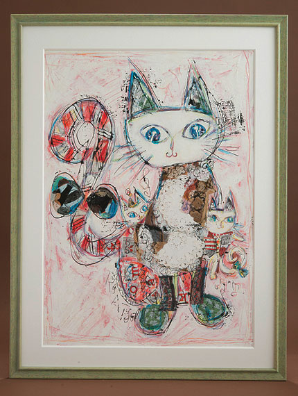 (コラージュとロウ画技法を一緒にして製作してみました)