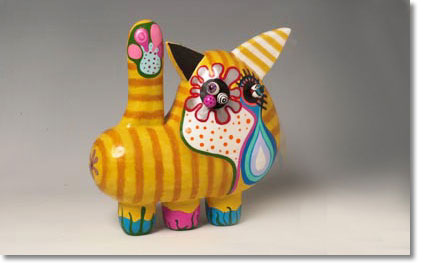 ねこ虫、プーバード、おっぱい猫など独創的な変わり猫を創作し、好評を得ている。