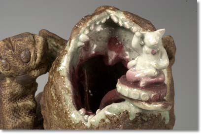 今回は口をあけてノドの奥から手まねきしています。