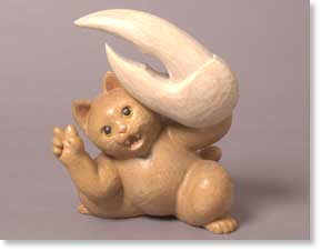 シオマネキ(カニ)のハサミを持ってまねをする猫
