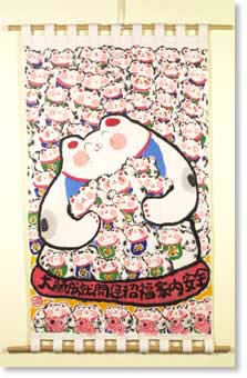デザイナーとしては大手ハンカチメーカーとのデザイン契約でグッズ類が全国のデパートで発売された。また近畿日本ツーリスト社の旅行カタログ「みちしるべ」シリーズを担当して布施招き猫が全国の観光地を案内している。 |