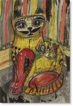 そのねこをろう画で仕上げました。