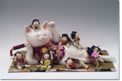 陶芸家であるご主人の岩月竹光氏と出会い陶人形作りを始める