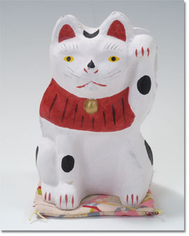 土人形、張り子など昔からの製法をベースにオリジナルな招き猫、福助、大黒様、恵比須などの縁起モノを制作しております。