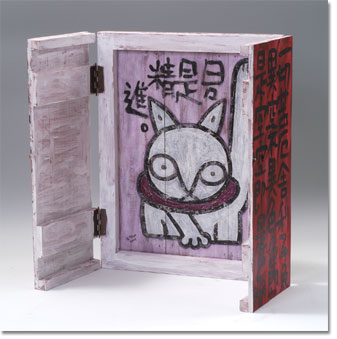 1990年頃より猫の絵を描きはじめ、キャンバス、ベニヤ、陶、布、などに様々な画材を使って制作。