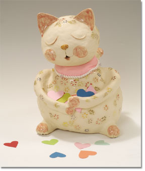 そんな”ねこのしあわせ”を感じてもらえるような招き猫をつくっていきたいです。すこしずつ大きなものにもとりくんでいるところで、ますますつくることが面白いこの頃です。
