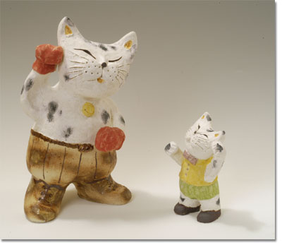 一年の半分はひな人形他節句の人形を中心に残りの半分はネコやあかり、器などを作っています。最近とくに人形や動物を作る時に、楽しさを感じる反面、心や表情の表現の難しさを感じています。
