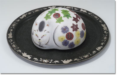 現在は2匹の猫と同居中。いつのまにか増えてしまっている猫のモチーフの七宝作品は絵皿、アクセサリー、立体の立ち招き猫、香立て額絵の数々とどんどん広がっていく。最初は家の猫をモチーフにした小さな皿1つだけだったのに・・・これも招き猫様の力か作品を喜んでくださる方々のおかげであろうか。これからも、どこにもない猫たちを生み出していきたい。 |