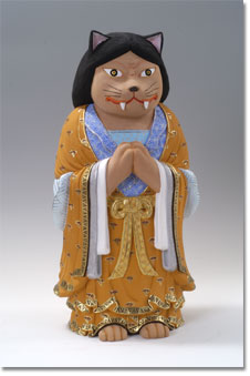 この鬼子母猫神は、福を招き、人々の幸せを祈って作りました。邪悪な者から人々を守ってくれるよう顔は鬼面になっています。 |