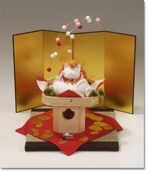 素材/紙粘土、白木の三方、古布、ちりめん、屏風 |