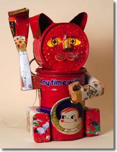 金属といっても金とか銀といった貴金属でなくステンレスとか真鍮、洋白、といった日常的な金属をつかい、フライパン、ステンレストレー時計の文字盤、ビールの空缶などに愛着を覚え、それでふくろうや招猫をつくるといった作業を今後も続けて行くつもりです。