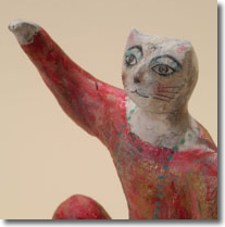 紙(張り子)、古布、粘土などの素材をつかって、郷土玩具のようなホノボノとしたモノから、幻想的なタイプのモノ、オブジェ的なモノまで、いろいろ作っています。これからも様々な手法を試みながら、私なりのネバーランドの住人達をつくりつづけていきたいと思っています。