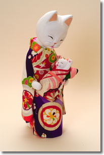 桐材に桐塑で肉付けし、木目込んであります。 |