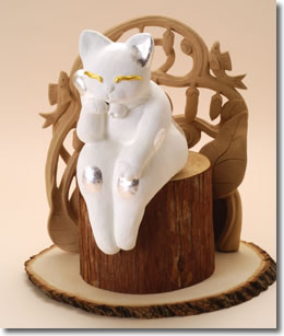 同時に精神世界観を取り入れた妖艶不可思議ワールドを個展等をとおして精力的に発表する中、猫と暮らす事になり、猫の魅力を知る。
