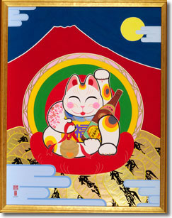 寂しかったり、疲れたり、悲しかったり、辛かったりの繰り返しの日々に、福を呼び込むと言う招き猫を、綺麗な彩色に心を配り、ただ一向根気よく、ていねいに描き、私の招き絵猫が、この殺伐とした時代に、少しでも心の安らぎを生み、幸せ招きが出来ますように、心を込めて描いています。