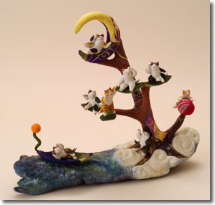 粘土の自在さに触れ、身近な存在である猫をモチーフに、独学で人形制作を始める