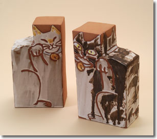 多治見工業高校専攻科を卒業後、グループ展ではじめて猫ものを発表して以来、すっかり猫ものにはまってしまっている。