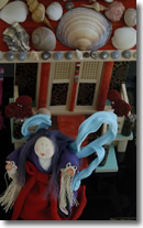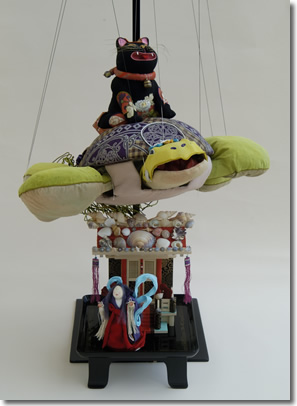 (上部)かめの背にのった操り人形 (下部)龍宮殿と乙姫 |