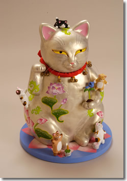 97年より招き猫の制作を始める 石粉粘土、陶土(焼物)で制作 |