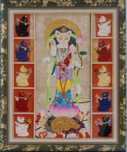 精神世界観を取り入れた作風で、平面から立体までを自在に造形。
