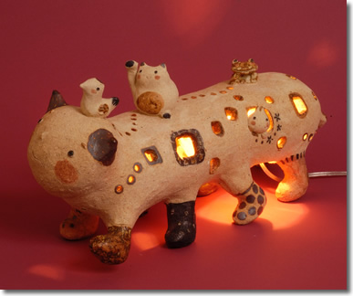 ダンナの陶芸の仕事を手伝いながら、窯のすき間に小さいネコを入れて焼き始めたのがキッカケ。