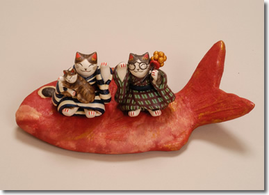 粘土の自在さに触れ、身近な存在である猫をモチーフに、独学で人形制作を始める