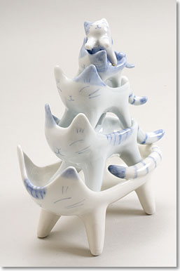 モデルは、我家の4匹の猫たちです。見た人が、ほっとなごむような作品ができたらいいなと思っています。