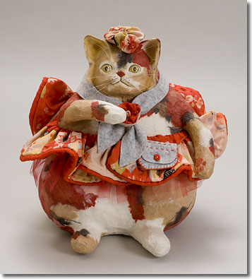 ねこを作るようになったのは、数年前古着屋さんでネコ人形を見かけとてもかわいかったので、そのネコを作ってらっしゃる先生に作り方を教わったのがきっかけです。その後いろいろ自分で作ってみました。