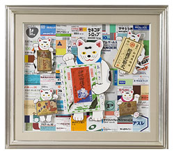 薬を持たせた健康招き猫を半立体作品で表現しました。 皆様のご健康と幸せを願って!!