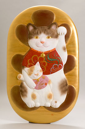 「あなたの猫ちゃんを招猫にお作りします」という企画で招き猫を作りはじめたのがきっかけで、猫アートにのめりこんでいます。猫のかたち、魂に気持ちを託して、幸福を招いてくれるもの、静かに深く時をいっしょにすごせるもの、ファミリーとの愛を願えるものなど、グッズから立体アートまで制作しています。