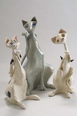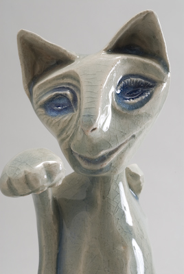 どこかに自分自身を投影しているような空想的な生物の造形物を中心に器やネコグッズも平行して作っています。何を作るにしても自分の感じていることを形で表現する、ということにこだわっているので、そこに共感してもらえるとうれしいです。
